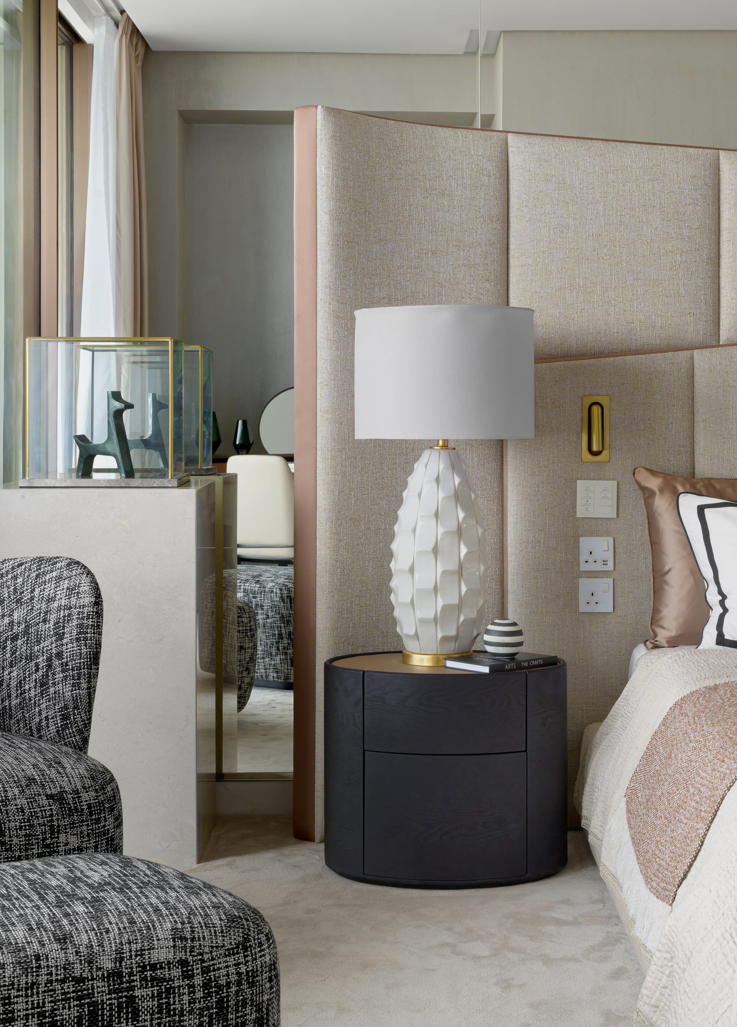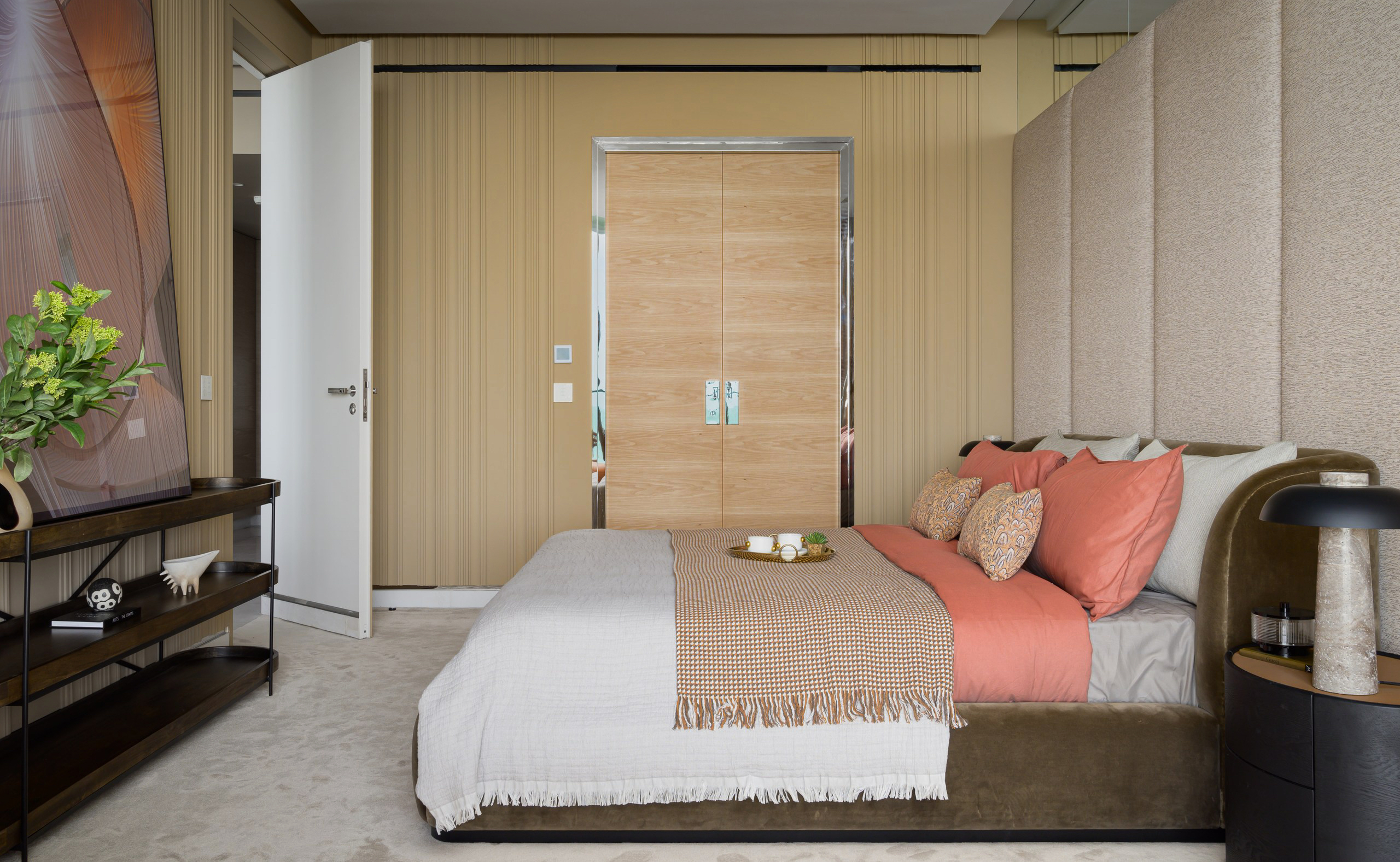 The master suite offers a serene retreat with panoramic views, a walk-in wardrobe, and a lavish bathroom, while the second bedroom provides equal comfort and style โ perfect for family living or hosting guests.